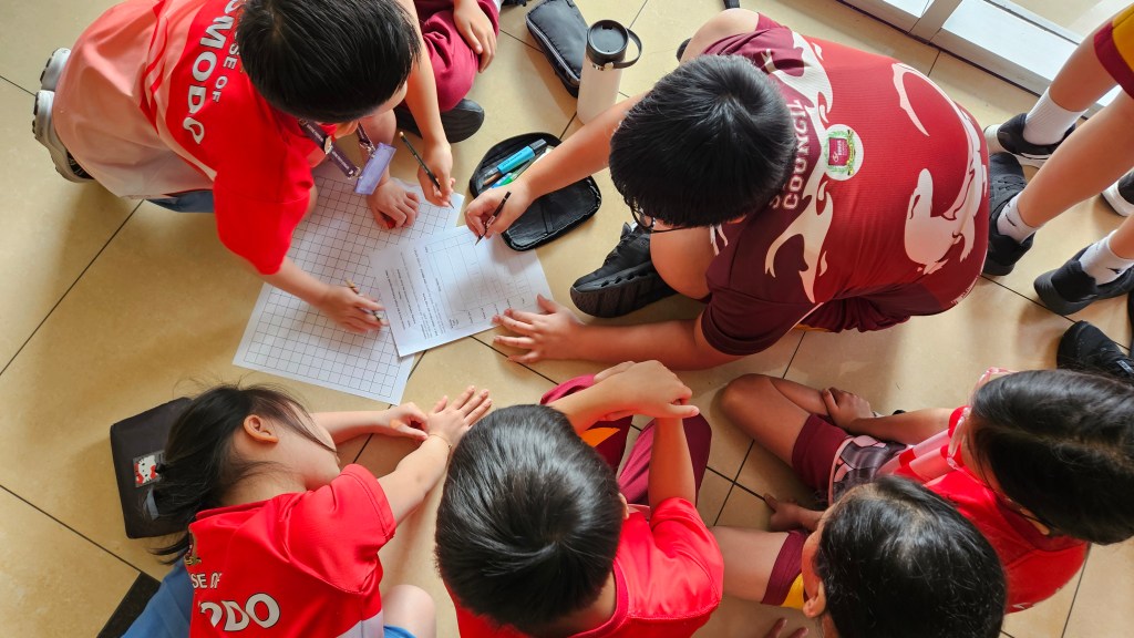 On the 3rd day we had to do the Math activities. It’s called Math Amazing Race. We were put in a group of five and we had to do sections of math activity. If you got the answer correct, you would get a flag representing your house color. Whoever got the most flags would win and you would be randomly teamed up with grade 3,