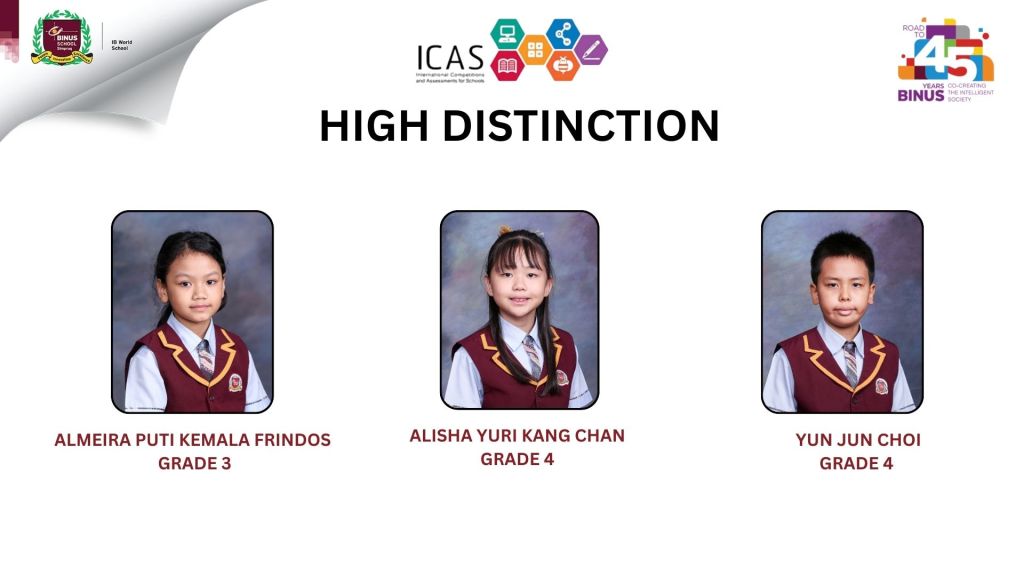 Congratulations to the GOLD Medalist, HIGH DISCTINCTION and Distinction winners of the ICAS Competition!