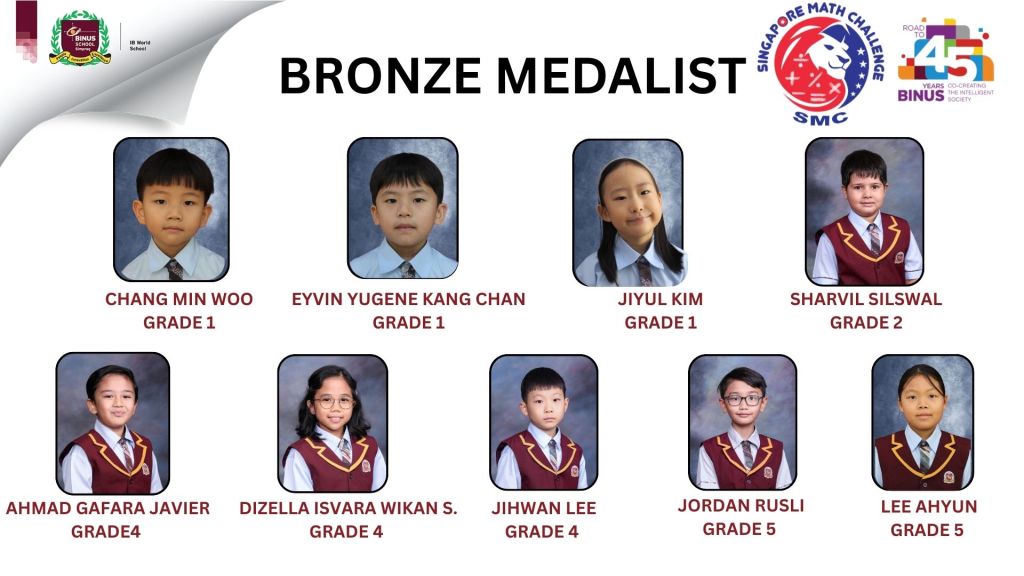 Congratulations to the Silver and Bronze Medalist winners of the Singapore Mathematics Challenge (SMC)