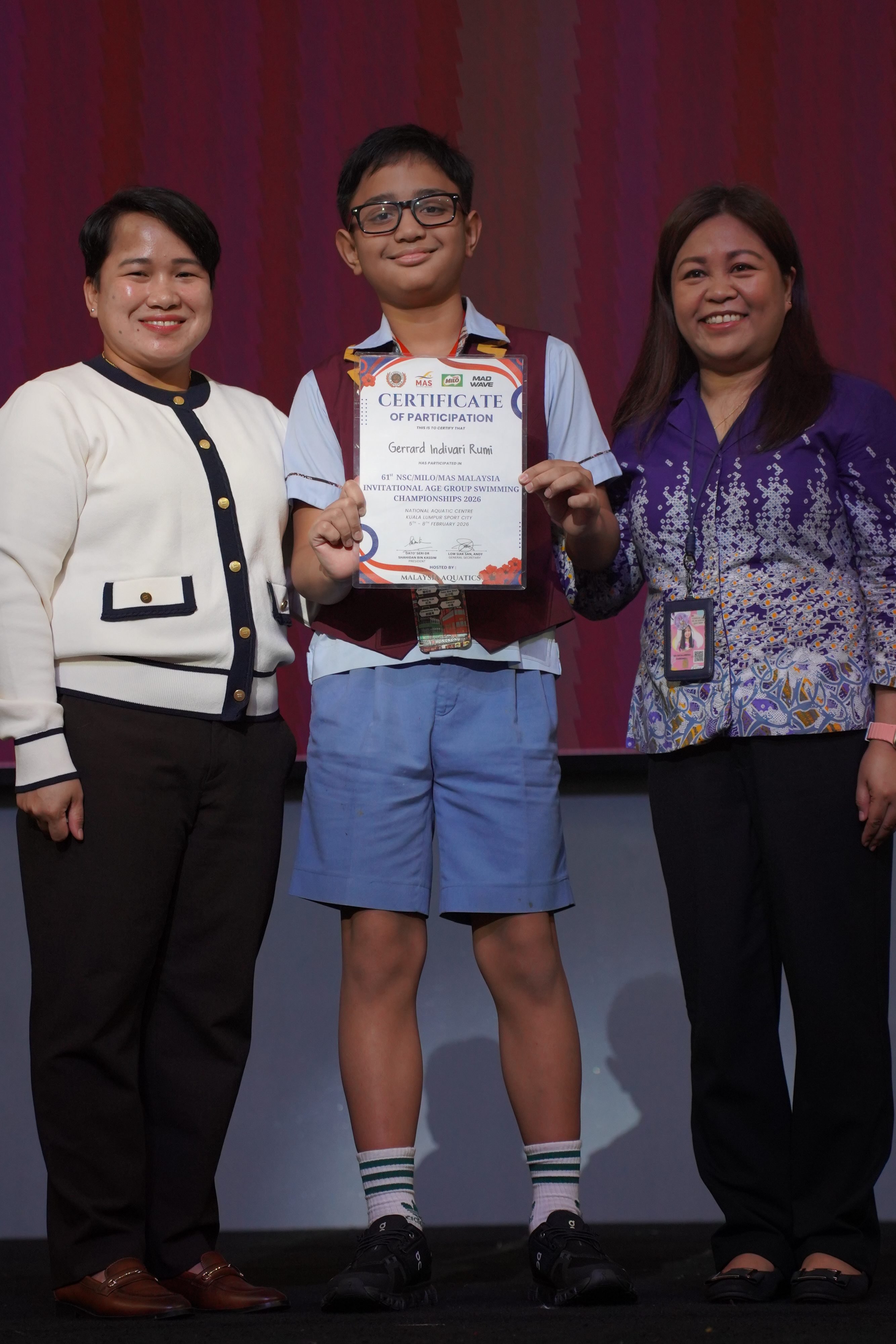 Congratulations to Gerrard Indivari Rumi Marzuki for winning the Malaysian Invitational Age Group (MIAG) swimming competition in Malaysia, 4–9 February 2026 at the Aquatic Centre Malaysia, Bukit Jalil.