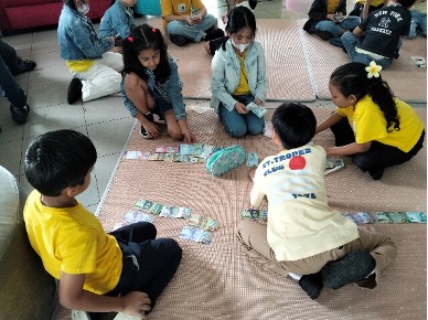 Before becoming young entrepreneurs, students learned about Indonesian rupiah through mock buying and selling activities to practice using money confidently.