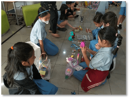 Students brought at least five items from home such as toys, stationery, books, or keychains and tote bags to carry the goods they received. They enjoyed negotiating, comparing choices, and deciding what to trade.